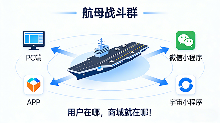 我们为您构建的不再是一个孤立的网站,而是一套协同作战的“航母战斗群”,实现用户在哪,商城就在哪。